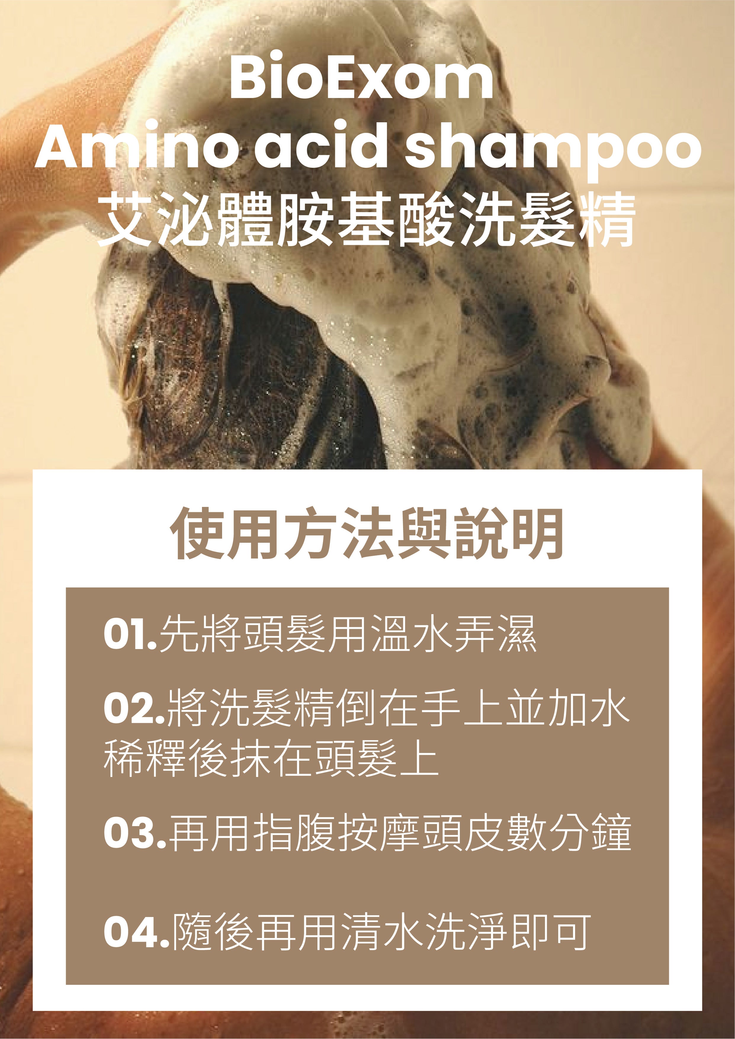 使用方法|先將頭髮用溫水弄濕,將洗髮精倒在手上並加水稀釋後抹在頭髮上,再用指腹按摩頭皮數分鐘,隨後再用清水洗淨即