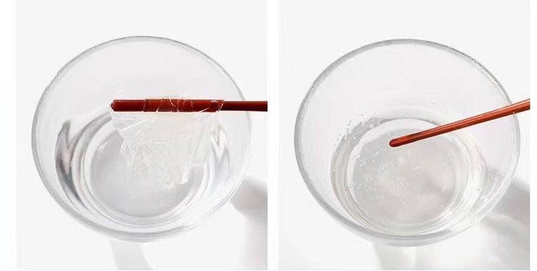 水凝膜面膜在使用後可放入溫水中融化,既減少垃圾,又克服了傳統面膜敷久後皮膚反失水的問題。